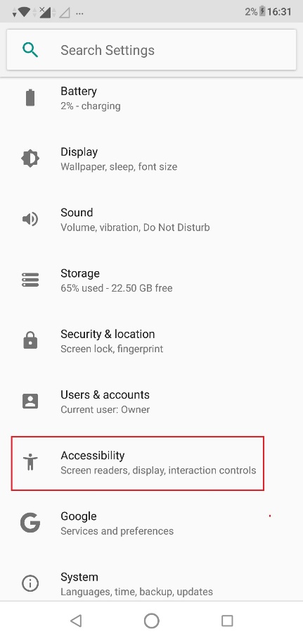disable the accessibility