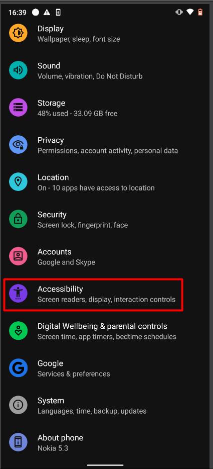 disable accessibility